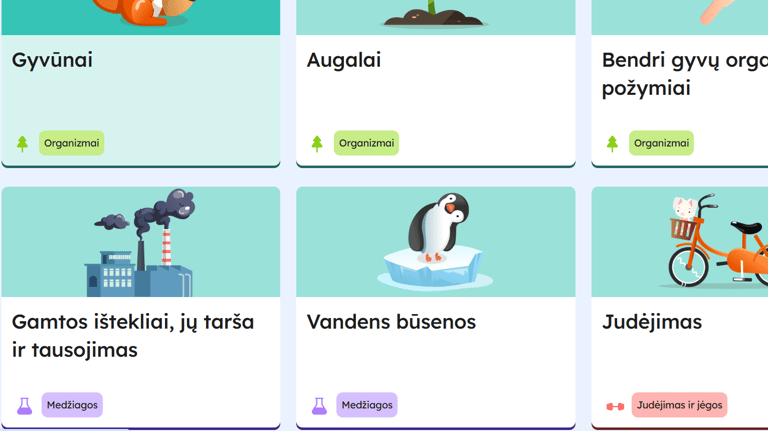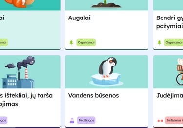 GAMTOS MOKSLŲ mokymosi objektai, įvairios pažintinės, loginės, kompetencijų plėtojimo bei kūrybinės užduotys, refleksija, mokomieji žaidimai ir kt. Didžioji dalis turinio atliekama online, tačiau veiklos lapus galima ir atsispausdinti. REIKIAMĄ TEMĄ RASITE papaudę čia - puslapiu slankiodami aukštyn ir žemyn.