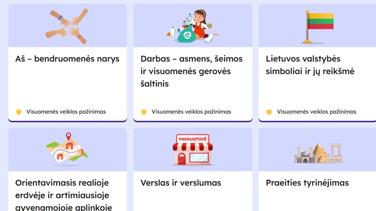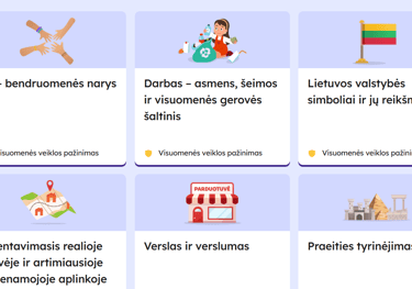 VISUOMENINIO UGDYMO mokymosi objektai, įvairios pažintinės, loginės, kompetencijų plėtojimo bei kūrybinės užduotys, refleksija, mokomieji žaidimai ir kt. Didžioji dalis turinio atliekama online, tačiau veiklos lapus galima ir atsispausdinti. REIKIAMĄ TEMĄ RASITE papaudę čia - puslapiu slankiodami aukštyn ir žemyn.
