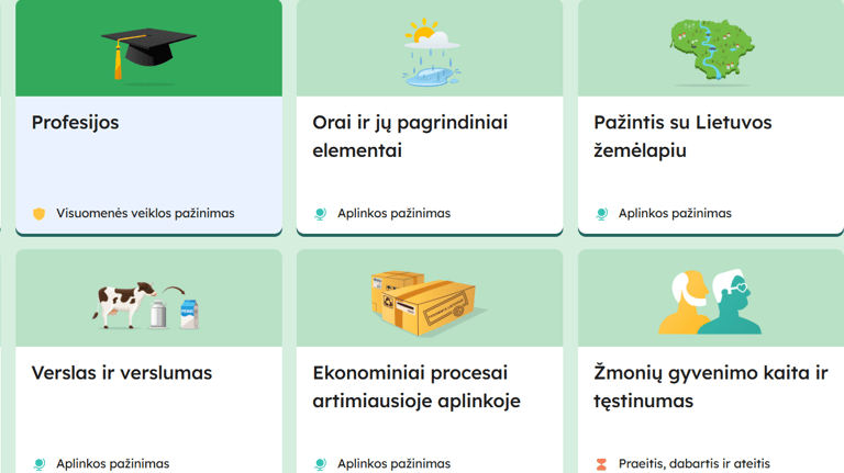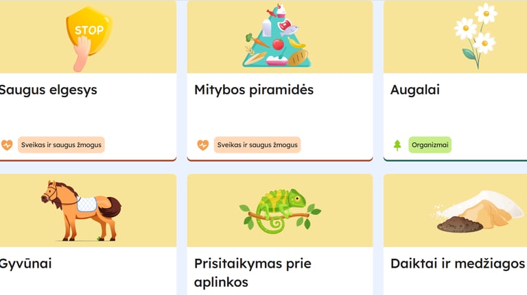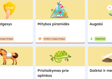 GAMTOS MOKSLŲ mokymosi objektai, įvairios pažintinės, loginės, kompetencijų plėtojimo bei kūrybinės užduotys, refleksija, mokomieji žaidimai ir kt. Didžioji dalis turinio atliekama online, tačiau veiklos lapus galima ir atsispausdinti. REIKIAMĄ TEMĄ RASITE papaudę čia - puslapiu slankiodami aukštyn ir žemyn.