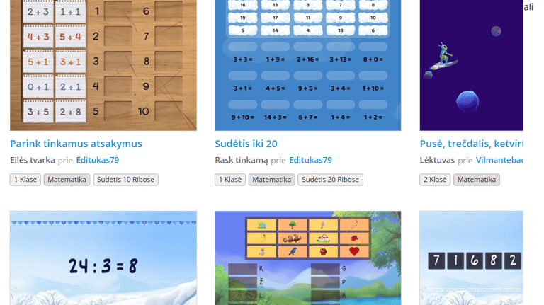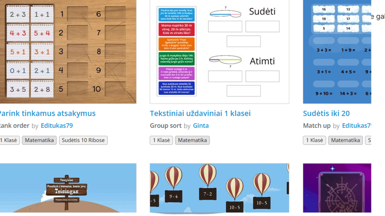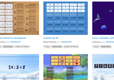 Mokymosi objektai, įvairios skaičiavimo, mąstymo, loginės, braižybos užduotys, refleksija, mokomieji žaidimai ir kt. Didžioji dalis turinio atliekama online, tačiau veiklos lapus galima ir atsispausdinti. REIKIAMĄ TEMĄ RASITE papaudę čia - puslapio kairėje slankiodami valdiklį.