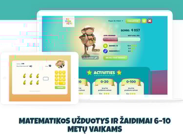 Kokybiškas matematikos mokymosi turinys, pateikiamas smagia ir motyvuojančia forma. Šie virtualūs žaidimai sukurti specialiai 6–10 metų amžiaus vaikams. Mokyklose ir namuose naudoti skirtą matematikos mokymosi turinį kuria geriausi pedagogai, pasitelkdami moksliškai įrodytus metodus. Spauskite čia.