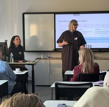 Mokytoja metodininkė Vaida Uždavinė pristatė finansinio raštingumo ugdymo idėjas pradinėse klasėse. Ji akcentavo, kad finansinis sąmoningumas pradeda formuotis anksti. Pirmosios vaikų patirtys su pinigais padeda suprasti pasirinkimus, atsakomybę ir vertę. Pranešėja kvietė įsitraukti į Lietuvos Junior Achievement pradinių klasių finansinio raštingumo programų įgyvendinimą.